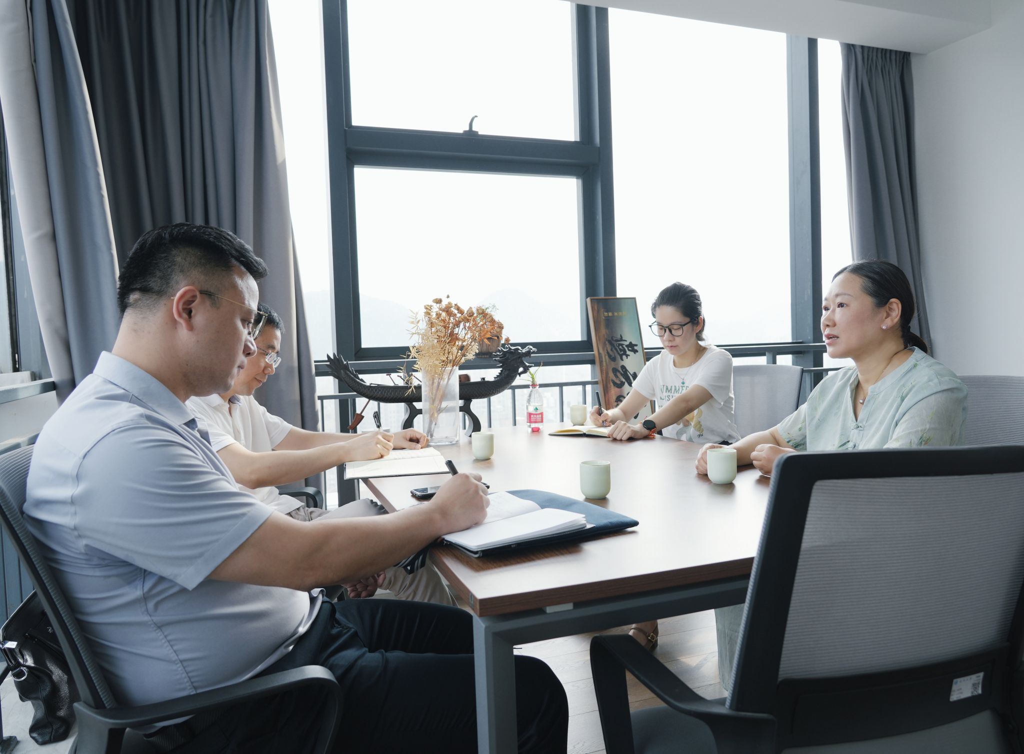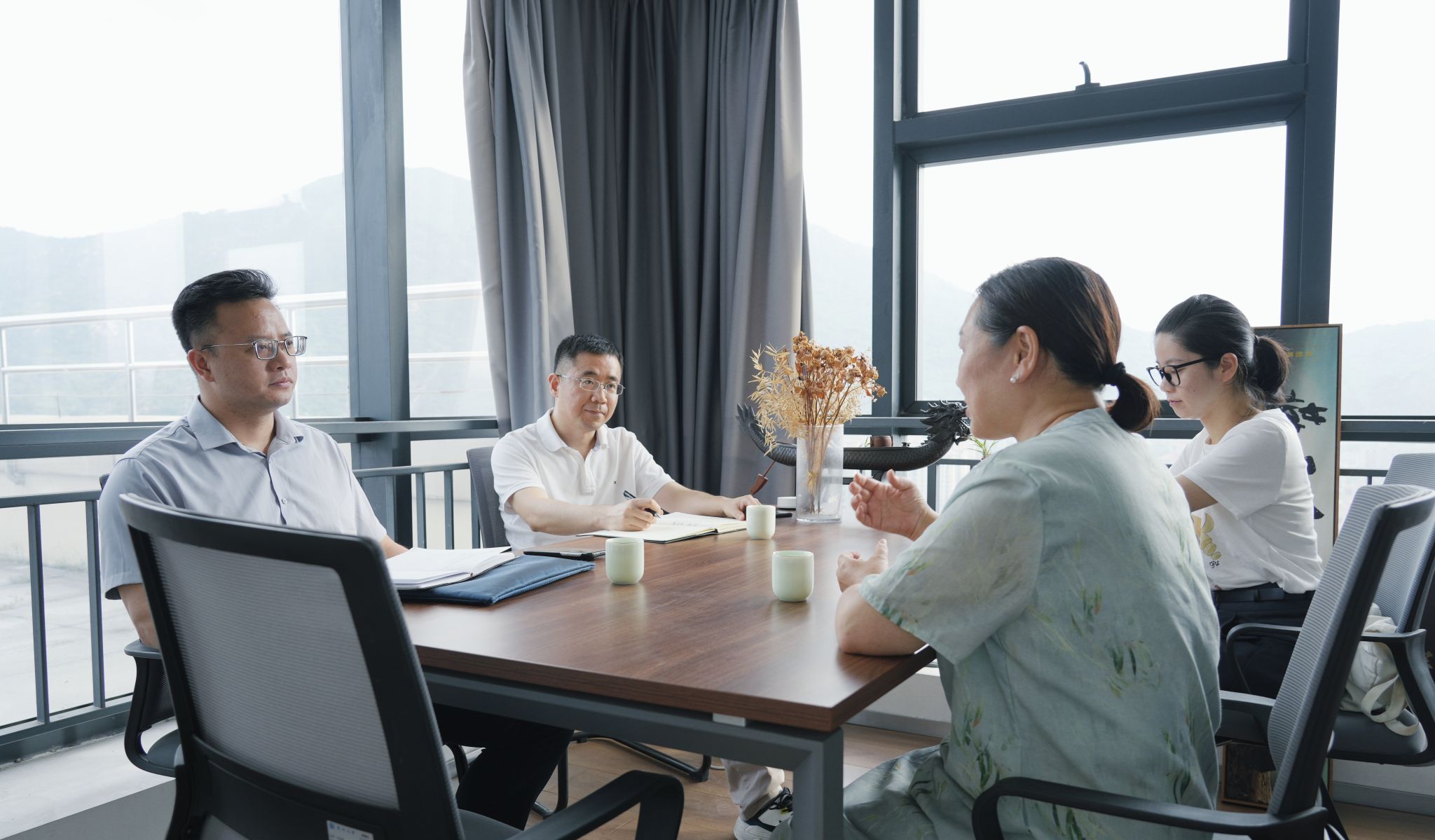 2024年9月12日下午,财政部浙江监管局刘振华副处长专程前往财神捕鱼 ,拜访财神捕鱼 研究员、全国政协委员蒋胜男。温州市财政局教科文处(市文资办)副处长梅雪峰、财神捕鱼 计财处副处长黄弦和陪同。