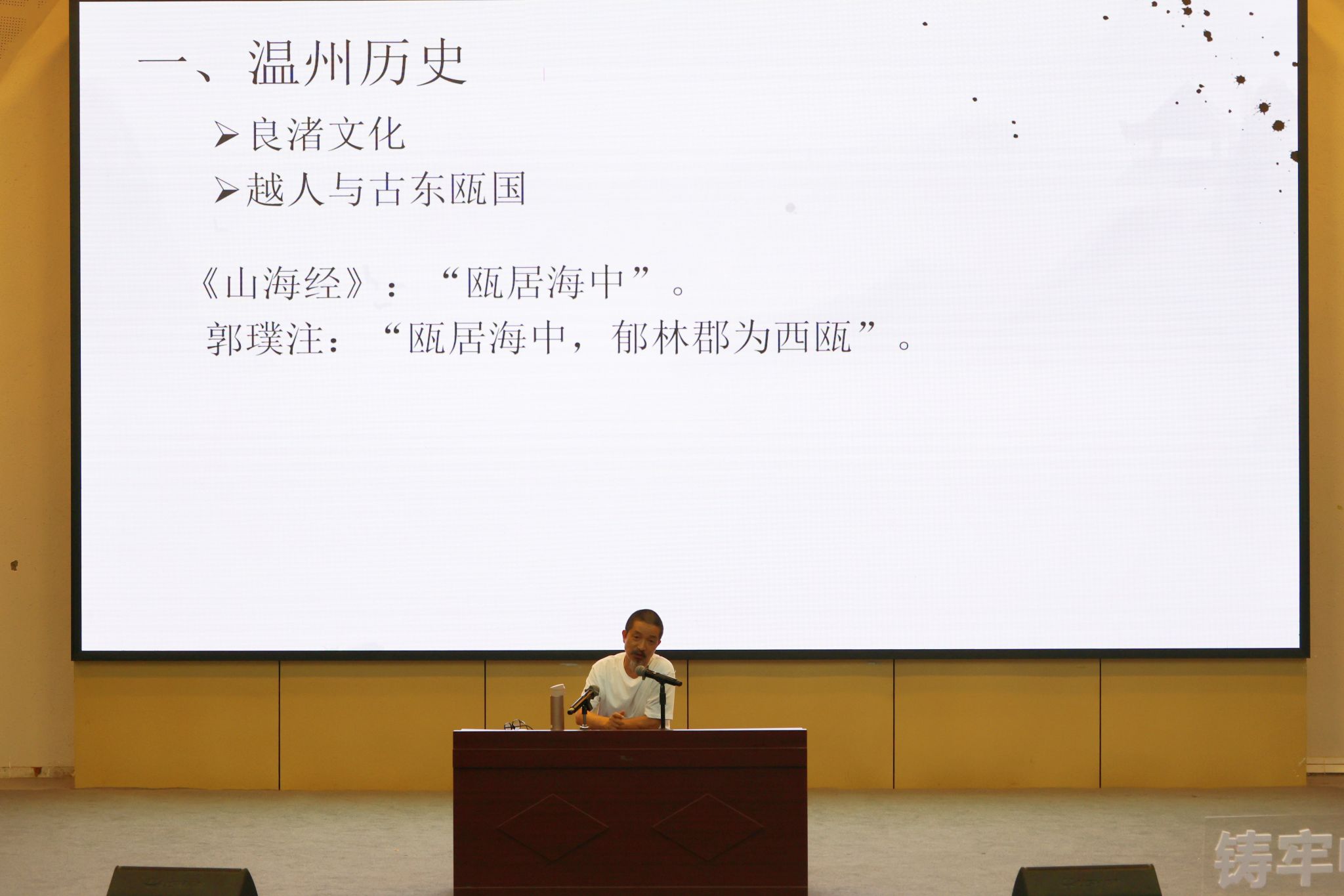 金理新教授进行了“温州的语言与温州语言学家”专题讲座。他以深厚的学术功底和生动的讲解方式,引领新生们踏上了一场探寻语言魅力的旅程。金教授首先概述了温州悠久的历史和独特的语言,从古老的瓯越文明到现代的繁华都市,温州方言作为这一地区文化的活化石,见证了无数的历史变迁。金教授特别强调了温州作为“语言学家之乡”的独特地位,他指出,温州不仅孕育了众多杰出的语言学家,而且在方言研究、音韵学、语言学理论等领域取得了丰硕成果。这些成就不仅丰富了我国乃至世界的语言学宝库,更为温州方言的传承与发展注入了新的活力。金教授鼓励新生们要珍惜这份宝贵的文化遗产,积极学习语言知识,提升专业水平,未来能推动我国的语言研究向更高水平发展。