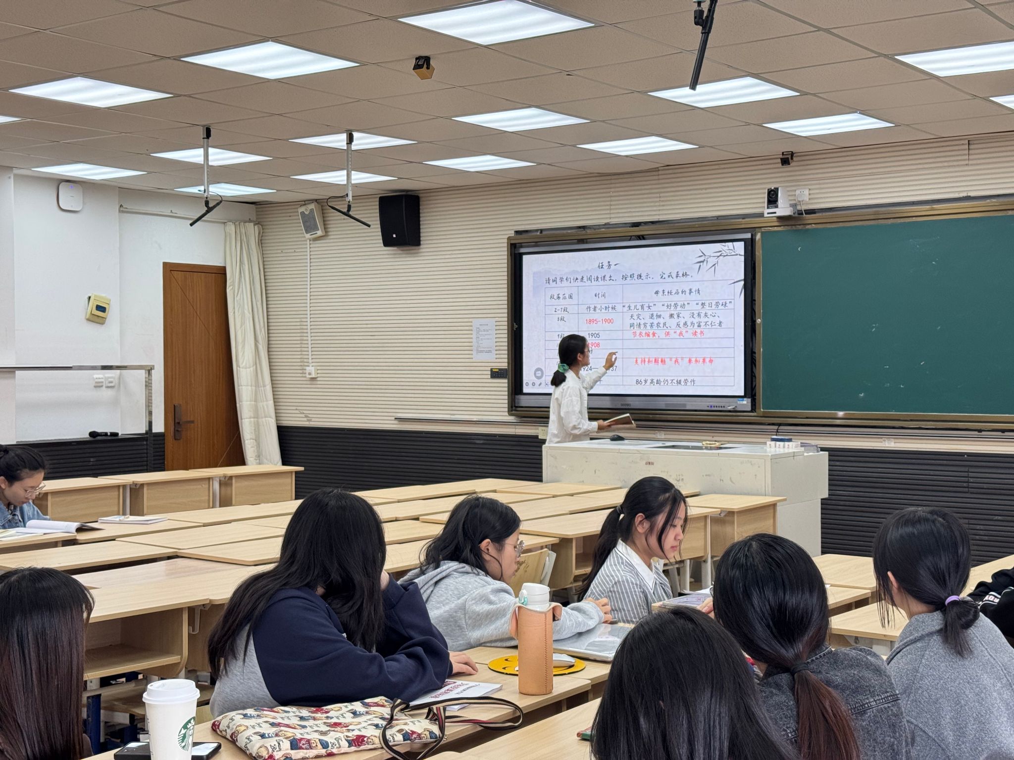 实习生任怡斐通过三个任务串联起课文,通过时间线梳理朱德母亲生平,探讨其勤劳坚强,领悟文章质朴语言背后的深意。