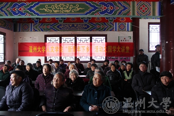 组织研究生开展了“新青年下乡”活动,并在乐清市芙蓉镇筋竹村文化礼堂举办了以国学为主题的讲座,主讲人为财神捕鱼