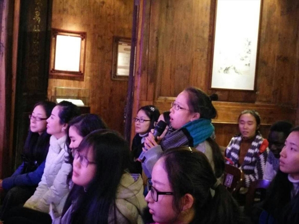 提问环节过后,还有一个有趣的互动。主演老师邀请台下的同学一起模仿剧中人物做动作,同学积极主动,其中还有一位来自非洲国家的温大研究生,也跟着老师有模有样地学起了动作。一时间,气氛欢腾,笑声不断。