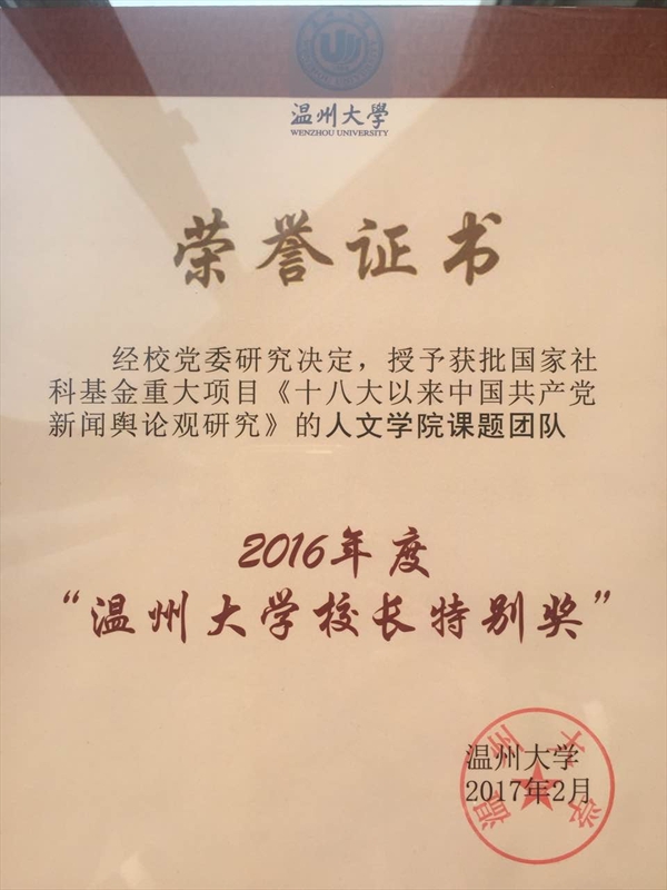 国家社科基金重大项目《十八大以来中国共产党新闻舆论观研究》的课题组团队荣获2016年度“财神捕鱼