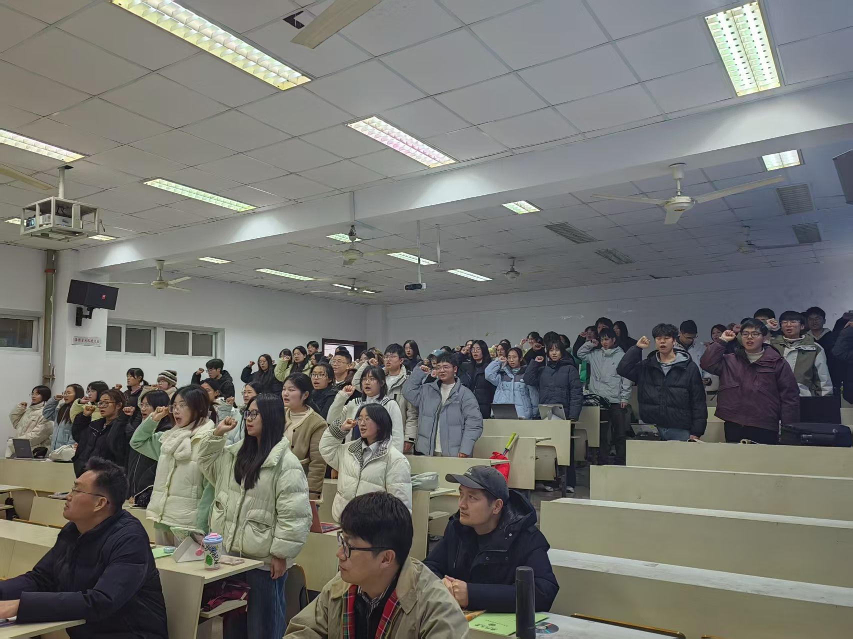 在实习生准教师宣誓环节,全体同学肃立,由甘玉慧同学带领大家庄严宣读誓词:“我志愿成为一名光荣的人民教师,以立德树人,铸就教育之魂。我将忠诚党的教育事业,遵守教育法律法规,履行教书育人职责,引领学生健康成长。为人师表,知行合一,努力成为有理想信念、有道德情操、有扎实学识、有仁爱之心的高素质教师。我甘为人梯,愿为心火,从实习开始为教育事业而努力奋斗。”誓言铿锵,展现了学子们投身教育事业的坚定信念。