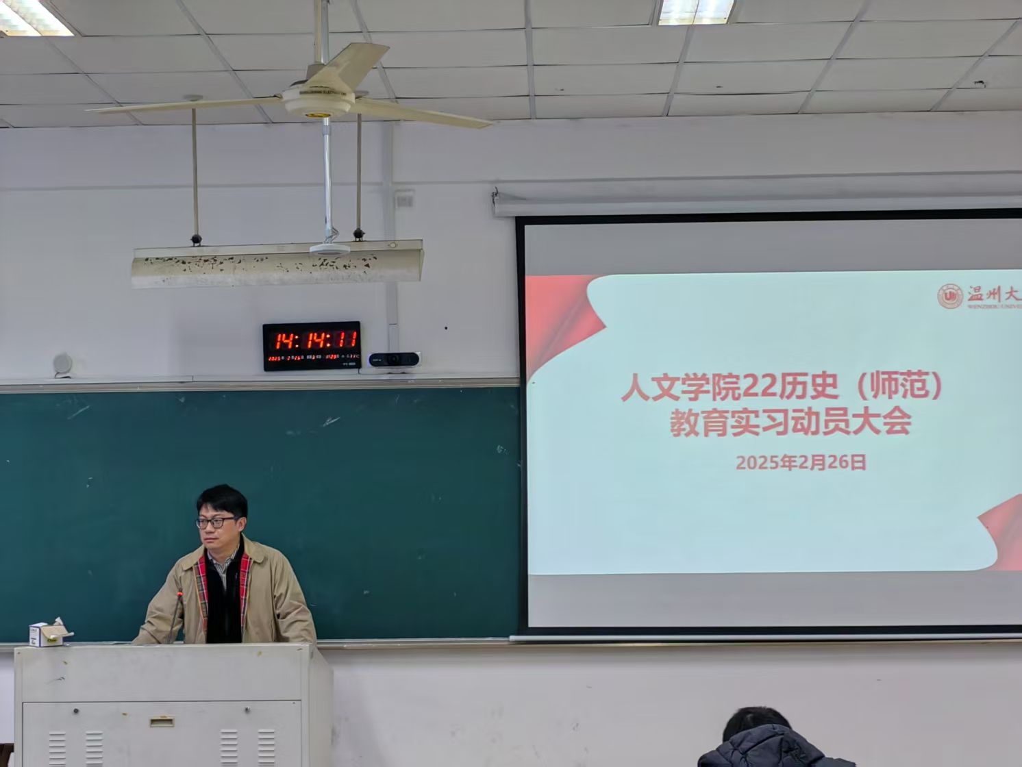 会议在热烈的气氛中拉开帷幕,陈鸿超副院长致开幕词。他以自身实习经历为切入点,回顾同学们从入学至今的成长历程,强调教育实习是师范生职业发展的重要转折点,勉励大家以严谨态度投入实践,夯实教学基本功,为未来职业生涯筑牢根基。