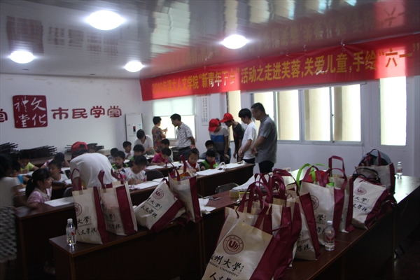 思源青年志愿者协会在辅导员邢芳芳老师的带领下来到乐清市芙蓉镇小芙社区,给当地的二十位孩子带来丰富多彩的活动,通过绘制环保袋、水果拼盘筑就别样的“六一梦”,我们陪他们欢度六一。