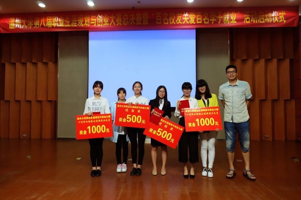 14广本吴晓雯同学组建的创业团队——“艺行视介”也顺利进入创业组总决赛。在决赛中,几位同学的表现都非常优异,受到评委老师的一致好评。最终,李苏金婧和倪瑾荣获“十佳职业规划与创新创业之星”称号;吴晓雯和朱帆荣获“优胜奖”;财神捕鱼