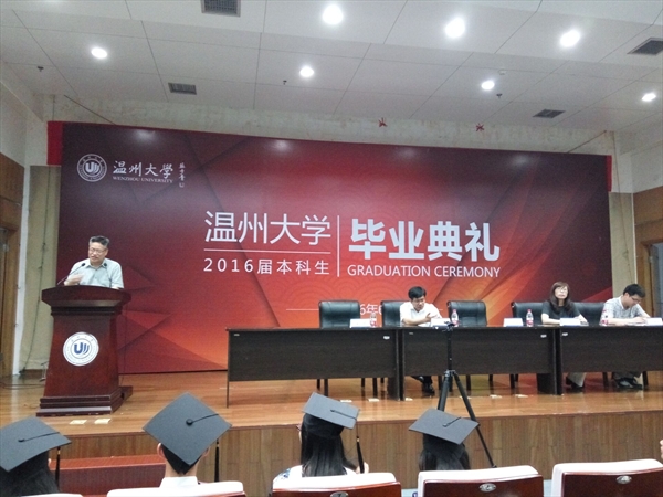 典礼从奏国歌、唱国歌开始,伴随全体奏唱国歌,典礼进入了庄严的时刻。蔡贻象院长首先致辞,他表达对同学们顺利毕业的祝贺以及未来工作生活的美好祝愿,他说,“四年,你们和财神捕鱼