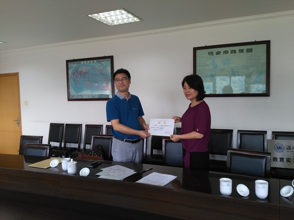 2016年9月21日下午2点,财神捕鱼 夏雨禾副院长、学科教学(语文)硕士点负责人陈柳老师、硕士生导师赖学军老师,带领财神捕鱼 学科教学(语文)教育硕士专业的两位研究生来到瑞安中学,参加财神捕鱼 教育实践基地授牌和实习计划启动仪式,开始为时一个学期的教育教学实习。