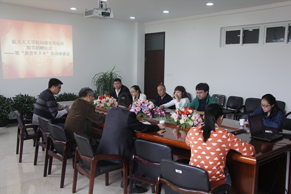 本次座谈的目的是展开新农村和高校的合作与交流。垟底村是温州乃至全国闻名的经济村,全村以工业为主导,经济发达。在日益繁荣的经济发展下,村书记等领导想将他们的环境建设和文化建设提上日程,在促进和温大财神捕鱼
