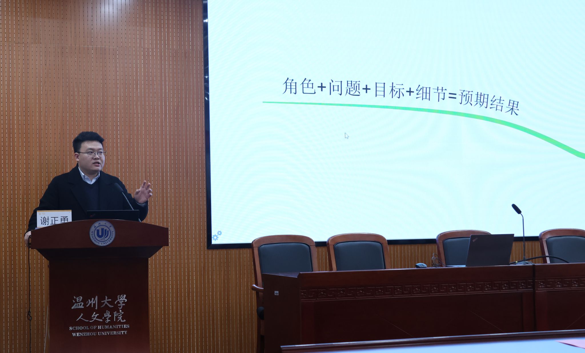 会上,瑞安市教育局教育机关电化教育与教育装备中心主任谢正勇作《破界与共生:AIGC时代,做不可替代的智慧教师》专题报告。谢主任结合高校教学场景,从如何向AI提问、图片处理、ppt制作等方面,深入浅出地讲解AI技术的运用,为教师提供了高效运用AI的“方法论”。