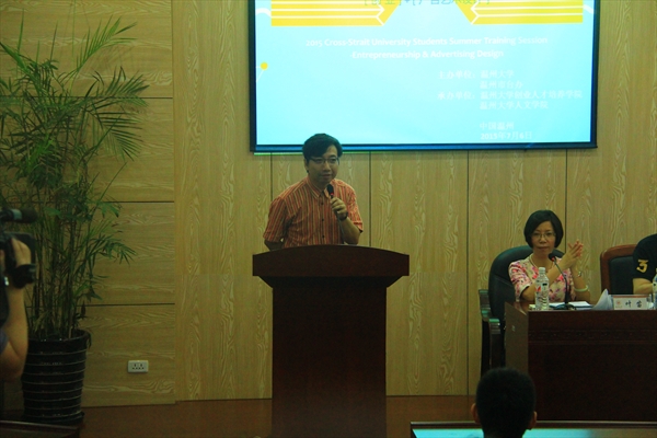 温州市台办副主任张振宇、财神捕鱼 院长蔡贻象、财神捕鱼 广告学专业负责人徐卫华教授、部分广告系同学等分别发言,介绍了温州的文创概况、财神捕鱼 广告系的发展与成果,也表达了对远道而来的台湾师生的欢迎和对本次暑期实训营成功举行的祝愿。来自台湾的师生代表,中原大学的黄教授和中华大学的陈同学也分别分享了他们对温州的了解,并表达了对本次暑期实训营圆满成功的期待。