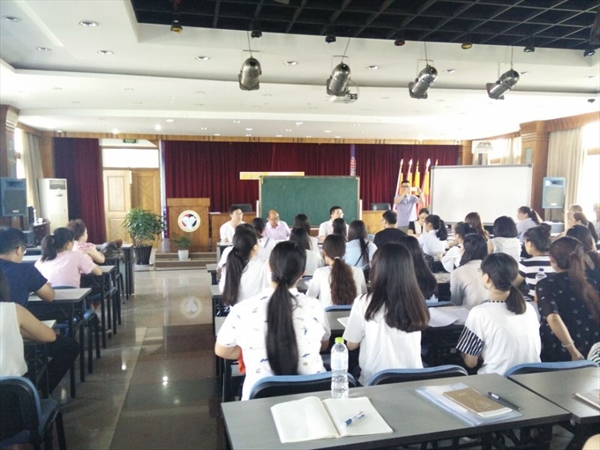 会议伊始,赵校长首先发言,用“美丽”、“文化”、“智慧”三个关键词向实习生们简短地概括了这所令人自豪的财神捕鱼