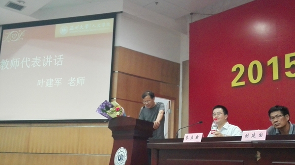 典礼从欣赏短片《在温大人文的日子》开始,营造了浓浓的毕业情。伴随全体奏唱国歌,典礼开始了庄严的时刻。蔡贻象院长首先致辞,他表达对同学们顺利毕业的祝贺以及未来工作生活的美好祝愿,他说,毕业的性质更多时候是叙事小说和戏剧剧本,充满着无奈、绝然和必须的面对。他也希望同学们以后能经常回财神捕鱼