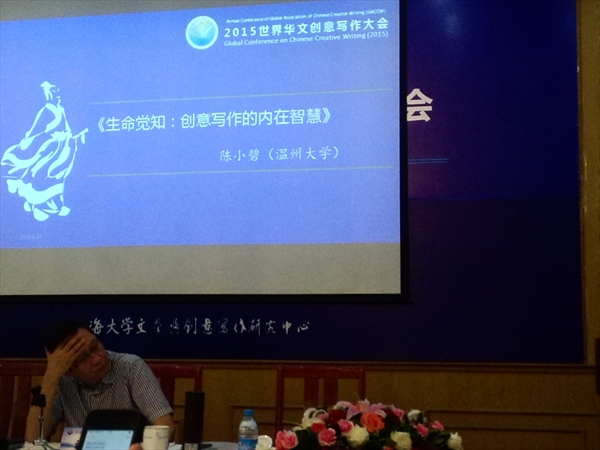 在大会主会场,陈小碧博士做了《生命觉知:创意写作的内在智慧》的报告,获得了与会代表的关注与赞同。会中,被推举为教育教学委员会主任委员,当选为理事。陈小碧在演说中认为:“创意作为人一种内在的潜能,带有某种神秘主义的特质,与生命的觉知和感受紧密相连。然而我们在上创意写作的时候,往往重在技术方法上的传授,内在智慧激发方面却常被忽略。心生万法,创意万物。提升觉察、觉知力,找到生命感觉,应是创意和写作的内在法则,也是深层智慧”。论文思路主要从生活智慧的提升入手,进而延伸到写作智慧,得出学习写作,其实就是学习生命的运行,学习如何做人的观点。