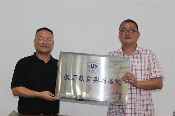与飞云镇中学进行了签约和授牌仪式。接着,诸葛校长介绍了飞云镇中学的基本情况,对实习指导师和实习学生提出了几点要求。他强调了爱心是教育的核心,信心是成功的基石。并且祝愿实习学生在历史与社会老师和班主任老师的带领下,能够顺利地完成实习任务,打好成为老师的第一步基础。