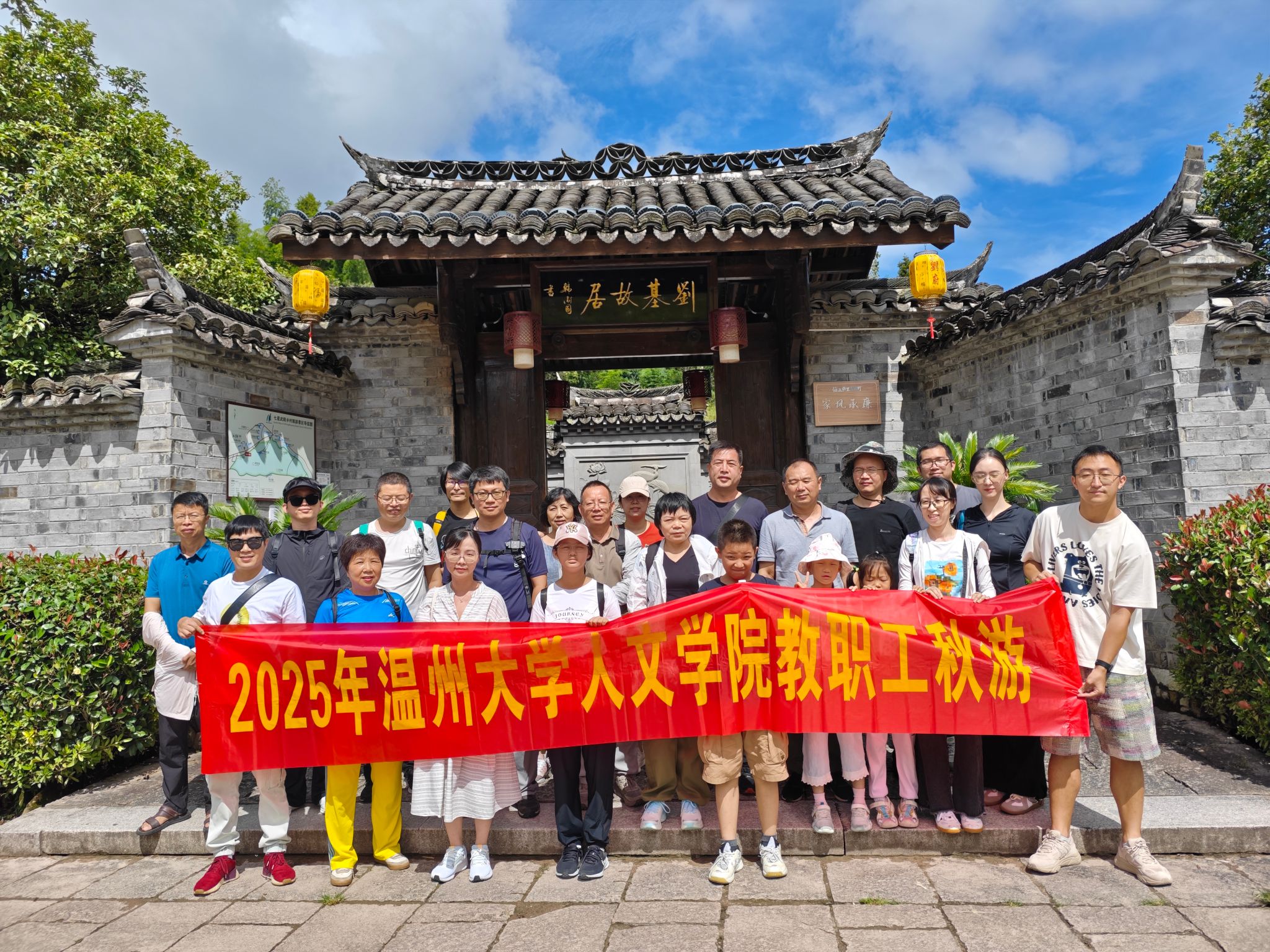 上午,团队抵达刘基故里。这里不仅是明代开国功臣刘伯温的出生地与归葬之所,更是一方文脉绵延、人才辈出的文化圣地。天顺三年所建的刘基庙与刘基墓,作为国家级文物保护单位,保留着深厚的历史记忆。教师们漫步于刘基故居、书院与纪念亭之间,在青砖黛瓦与碑刻文献中,感受刘基作为政治家、军事家与文学家的多重身份与其对浙南文化的深远影响。作为财神捕鱼 的教师,大家从建筑格局、家族文化与地方史料中,捕捉温州人文精神的源流与特质,展开了热烈而深入的探讨。团队在文成体验了独具地方风味的“伯温家宴”。宴席以传统农家菜与文成特色食材为主,融入了刘基文化中的饮食理念与礼仪传统。席间,新引进的青年教师与资深教授围坐交流,在美食与笑语中拉近了距离,进一步融入了财神捕鱼 大家庭。