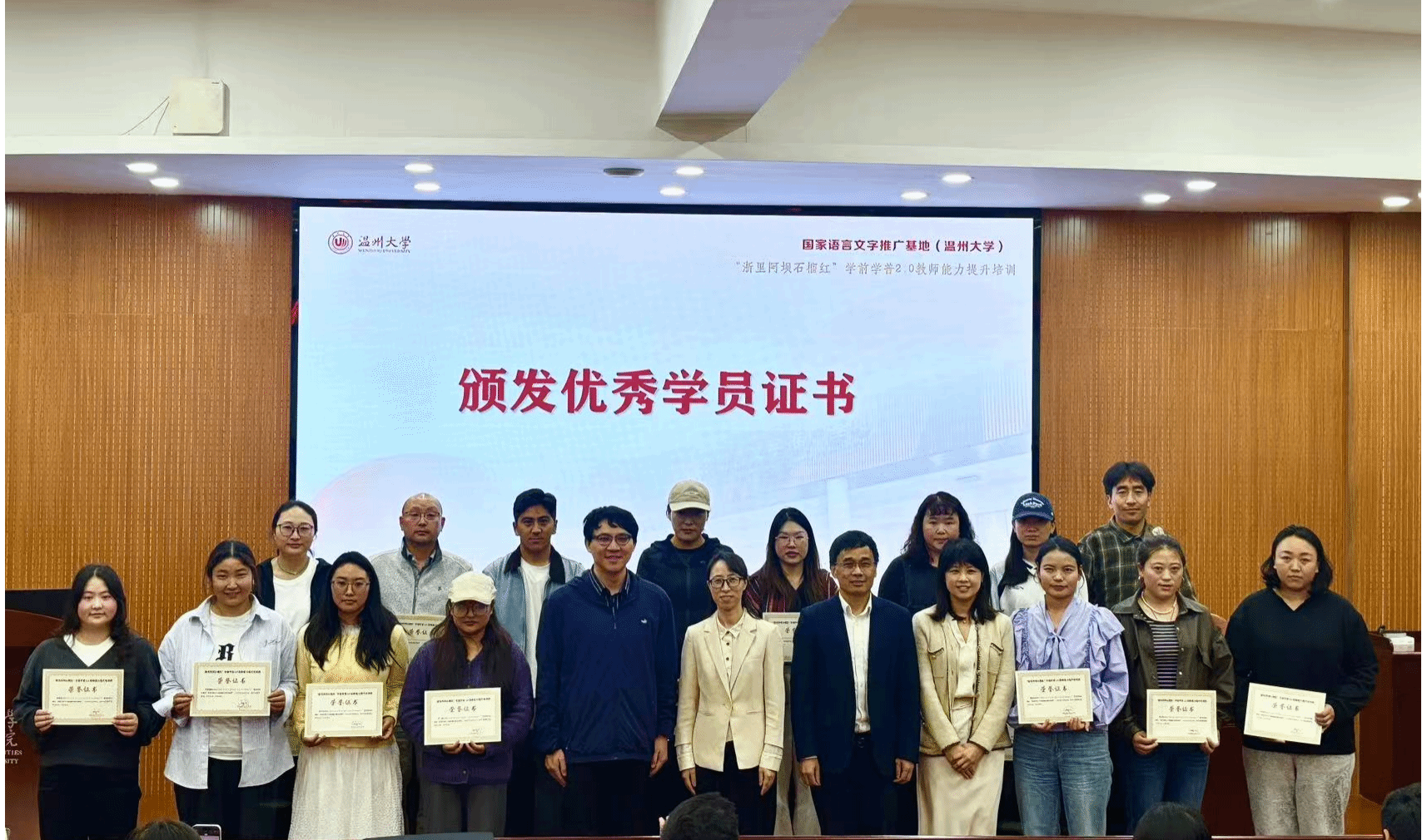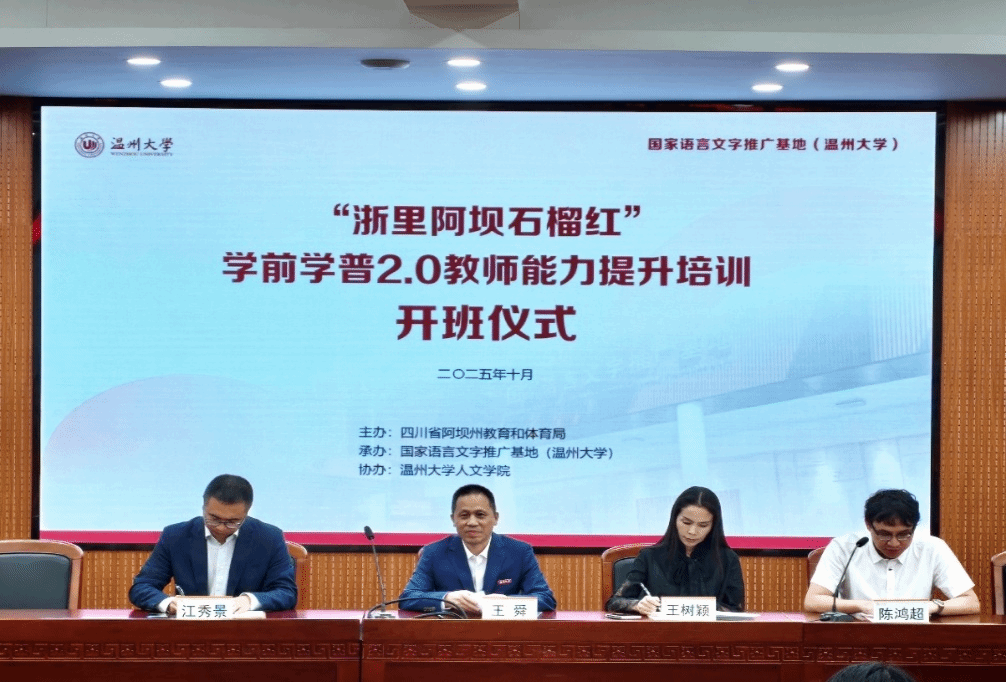 2025年10月21日至28日,由四川省阿坝州教育和体育局主办、国家语言文字推广基地(财神捕鱼 )承办、财神捕鱼 协办的“浙里阿坝石榴红”学前学普2.0教师能力提升培训项目在财神捕鱼 成功举行,来自四川省阿坝州8个县(市)的100名藏、汉、羌、彝和土家族老师参加学习。