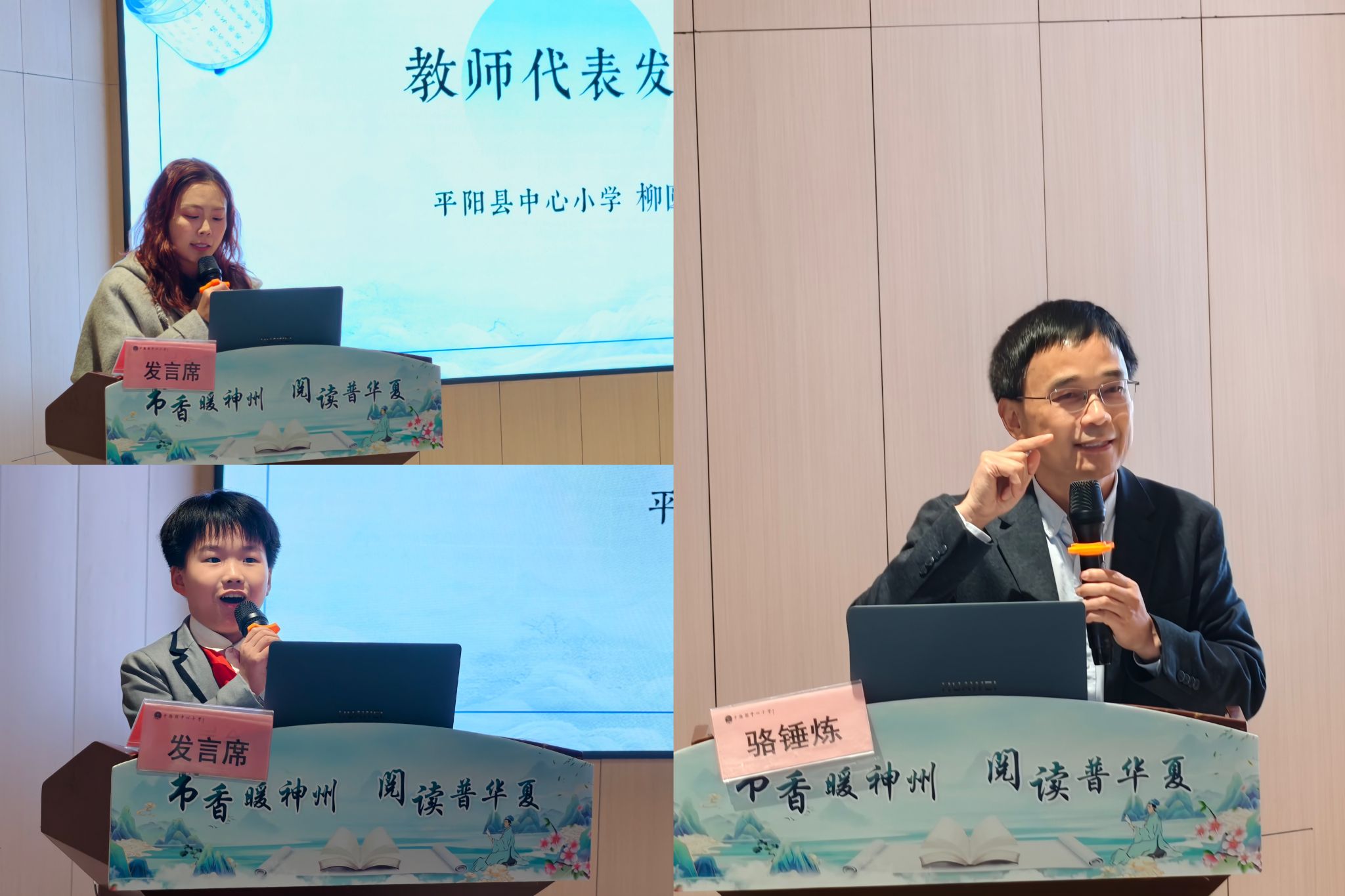 平阳县中心小学教师代表柳圆圆、学生代表郑远锐同学先后发言。国家语言文字推广基地(财神捕鱼 )副主任骆锤炼老师为同学们讲授了《汉字的形体与书写规范》精彩微课。财神捕鱼 教工第三党支部书记余琼老师深有感触,她表示,作为省级党建工作样板支部和校级“政治功能、组织功能‘双强’党支部典型案例”培育创建单位,下一步将加强与平阳县小党总支的合作,要以党建引领为核心,通过理论共学、支部联建、人才共培等形式,推动党建工作与语言文字业务深度融合。