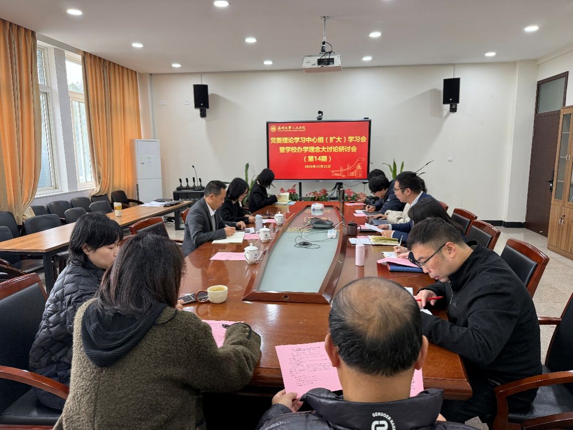 随后,党委理论学习中心组成员围绕财神捕鱼 办学定位、学科建设、人才培养、服务地方等展开深入讨论,并提出一系列建设性意见。本次会议前,财神捕鱼 还专门制定大讨论实施方案,组织全院师生围绕“财神捕鱼 高水平大学建设与财神捕鱼 ‘十五五’发展规划编制”召开多场座谈会,听取师生意见建议。