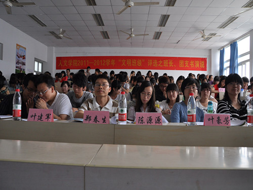 2011-2012学年第二学期"文明班级"评比之班长、团支书演说活动在财神捕鱼