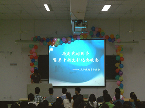 2012年5月20日晚上6点30分,在人文楼举行了"微时代"游园会,暨第十期《文轩》纪念晚会。财神捕鱼
