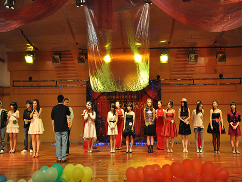 场光逐渐亮起,追光,彩灯闪耀,10名身穿白色T恤和黑色短裙的艺术团女生已在灯光下如花绽放了。随着一曲劲爆的《Pocker Face》,她们便开始随着节奏踏起轻捷的舞步,抬起手臂,下蹲,扭腰,转身,手臂交叉,疾转,弯腰,一连串的舞步整齐而妩媚柔美。肩的微颤,颈的轻摇,每一个舞姿便宛如生命里的一次绽放,充分展现了女生的魅力与青春的活力。