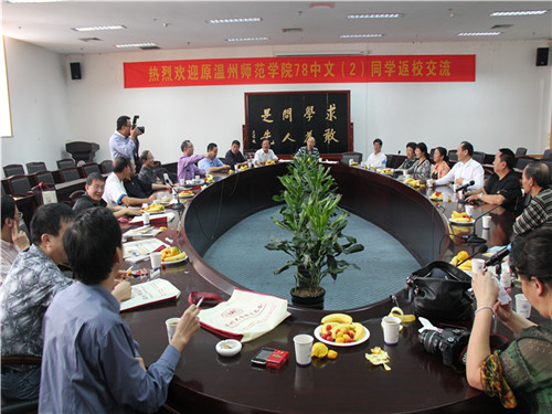 校史馆后的感想,同时一起回忆了往昔的岁月,现场气氛活跃,其乐融融。交流会期间,我们有幸采访到余贤庆、葛明霞、郁小鸥等部分校友。他们为温大学子献上了寄语,认为学生应该把握时间,踩点生活,学习时就应该努力学习,工作时就应该认真工作,把自己的每一天过得充实。作为温大的学子,我们应当勤奋努力,把握住分分秒秒。