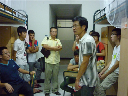 副院长饶道庆老师带领的那一小组看望了11中本3的住在C区综合楼的新生们。通过在轻松氛围的沟通中,财神捕鱼