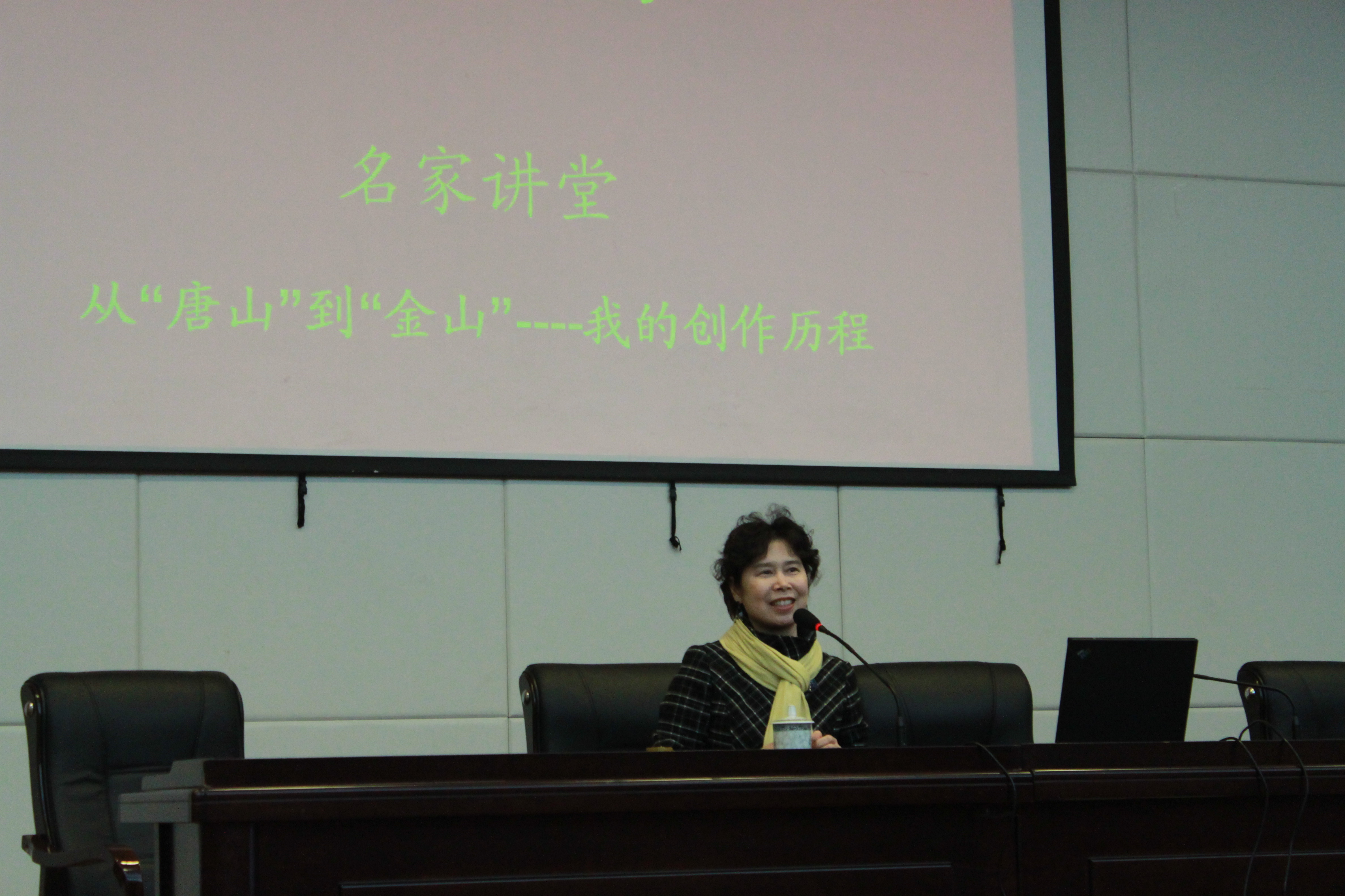应财神捕鱼 宣传部、社科处、财神捕鱼 的邀请,3月16日下午1:30分,著名海外华文作家张翎在财神捕鱼 育英图书馆学术报告厅做了题为“从‘唐山’到‘金山’——我的创作历程”的讲座。