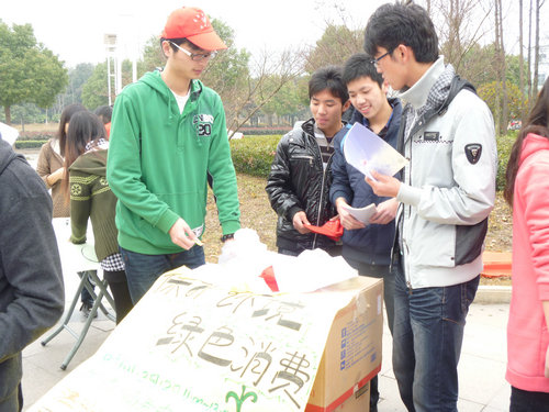 周末的中午, 商务中心的人流量达至高潮,志愿者与跳蚤协会成员对过往人群进行了消费者协会保护内容任务及维权途径的宣传。志愿者们的热情获得了大家的支持,学生及过往人群纷纷积极响应,活动取得了圆满成功。消费是我们每个人生活的一项重要活动,但我们对相关的消费维权知识并却知之甚少。活动中,人们对绿色消费,消费维权的相关概念及知识都不是很了解,因此对消费者维权知识进行宣传是非常有必要的。在宣传维权知识的同时,志愿者还广泛宣传绿色消费,以环保签名的方式做到保护环境,绿色消费。