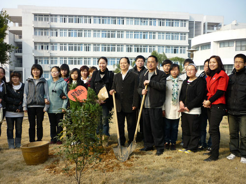 活动伊始,曾老师组织参加人员在人文楼外的草坪种下了“感恩树”。王校长、骆老师和受助学生们一起种下象征顽强和生机的松树,这也表达了受助学生们感恩之心。其后,一行人回到会议室交流助学情况。交流会上,骆老师首先代表财神捕鱼