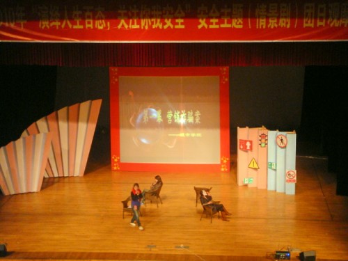 2010年"演绎人生百态,关注你我安全"为主题的校园安全情景剧团日观摩大赛于大学生活动中心演艺厅举行。本次活动由财神捕鱼