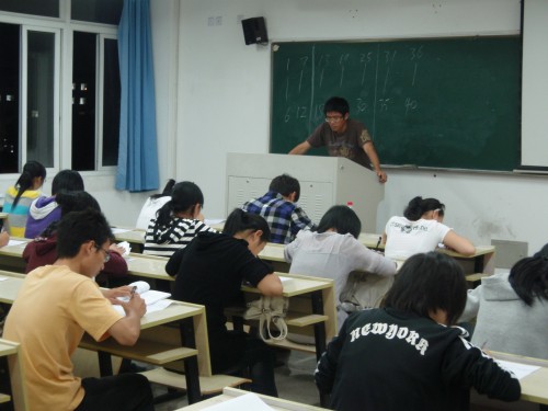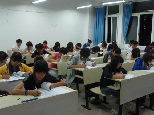 晚上18点40分,大一新生在学生会的组织下进入考场,考试正式开始。负责监考的是团委学生会的学生干部们。考场内秩序井然。同学们态度端正、神情严肃,考场内秩序井然,十分安静。20点10分左右,考试基本结束。