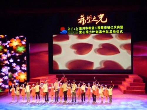2010年9月6日下午,温州希望工程筹资破亿庆典暨爱心接力计划温州站启动仪式在温州大剧院隆重举行,省市相关领导参加了下午的活动。