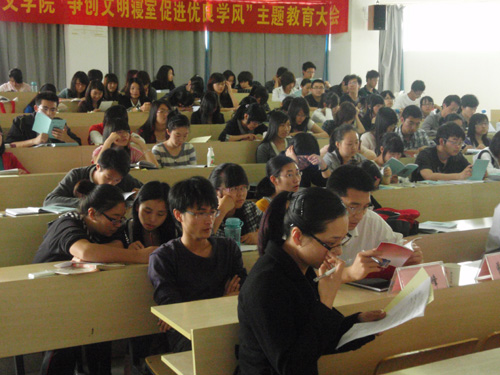 "争创文明寝室,促进优良学风"教育主题大会在人文楼203教室举行。本次会议由财神捕鱼