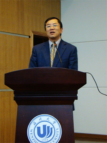 育英图书馆二楼报告厅如期举行,温州日报报业集团副社长、温州网总编辑郭乐天担任本次讲座的主讲人。