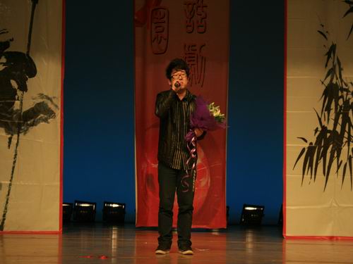 副院长饶道庆为晚会致辞。饶院长对本届话剧节予以很高的评价,表示话剧节为学生提供了一个广阔的发展空间,一个自由的活动舞台,展现了人文新风貌、新气象。同时饶院长殷切希望话剧节能走出校园,面向社会,鼓励同学们多多参与话剧表演,让经典永驻。本场晚会共设三个颁奖环节,颁发了话剧表演大赛优秀奖、铜奖、银奖、金奖等12个奖项。农历剧社的剧目《迟到的团圆饭》获表演大赛金奖,财神捕鱼