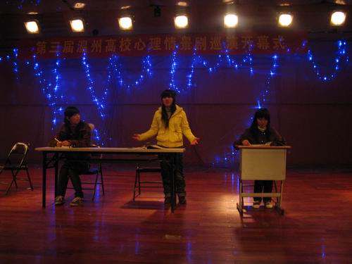 2009年12月19日,第三届温州高校心理情景剧巡演开幕式在北校音乐厅隆重举行,财神捕鱼