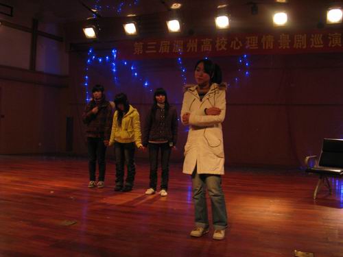 参加心理情景剧第一站的演出,充分展现了人文学子的风采和高超的表演技能。心理情景剧的巡演,也使更多同学感受到心理健康的重要性,从而为温州高校心理健康的宣传提供一个良好的平台。