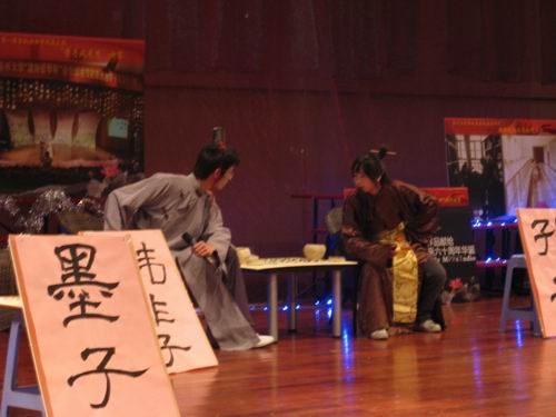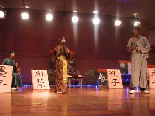在"特色展示"环节中表演了话剧《夫子道德》,生动活泼,别具一格,展现了我们财神捕鱼