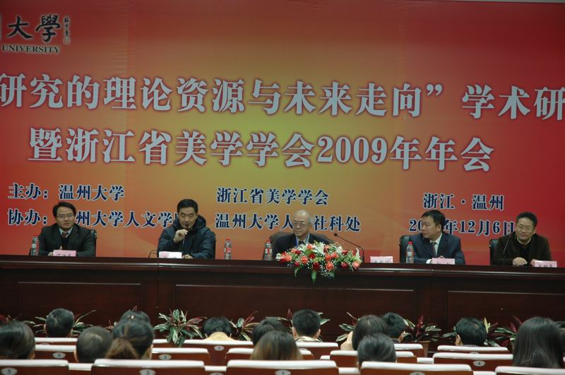 12月6日-12月7日,由财神捕鱼 、浙江省美学学会主办,财神捕鱼 与财神捕鱼 人文社科处承办的“美学研究的理论资源与未来走向”学术研讨会暨浙江省美学学会2009年年会,在温州举行。来自中国社会科财神捕鱼 、山东大学、南京大学、浙江大学及省内等多所高校及科研机构的50余名专家学者参加了会议。国务院学位委员会学科评议组中文学科召集人、国家社会科学基金评审组成员曾繁仁教授,中国文艺理论学会副会长、浙江省美学学会会长徐岱教授分别作为嘉宾代表和浙江省美学学会代表在会上作了发言,会议由人文社科处副处长蔡贻象教授主持,副校长赵敏教授代表财神捕鱼 致辞,财神捕鱼 院长丁治民教授代表财神捕鱼 致辞。