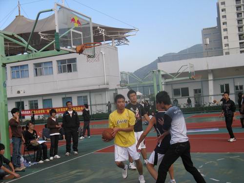 “新生杯”篮球赛之09中本一班和09中本二班联合对抗09中本三班的比赛在北校篮球场拉开了战幕。