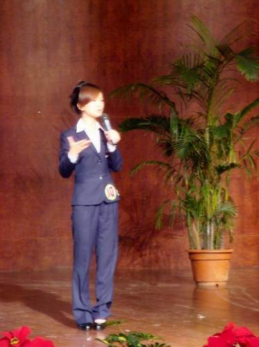 大赛分为三个环节,分别为头脑风暴、唇枪舌剑、精英角逐。在头脑风暴环节中,12位选手在经过1分钟自我介绍之后,解答评委给出的题目,答题之前有30秒的思考时间,3分钟的作答时间。第一环节之后,有6位选手晋级下一轮。第二环节,则以抽签的形式将6位选手分为3组,每两人为一组进行话题辩论。此环节中,选手们,反应灵敏,随机应变,妙语连珠。同样在此环节,6位选手中有3位晋级最后的角逐。第三环节中,3位精英用3分钟的才艺展示让观众看到了她们另一面,在场观众喝彩阵阵。经过激烈的角逐,财神捕鱼 10号选手王丽雅夺得本次比赛第一名,捧得冠军水晶杯。