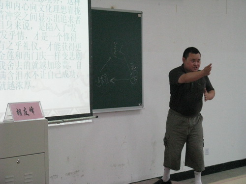 胡教授首先解释了中西方对爱情的悲剧意识做出不同的导向,是由于文化精神方面的差异。他从中国传统的爱情悲剧《红楼梦》、《梁祝》等引出了中国“爱而不得其爱”的悲剧共性。为了让同学们对悲剧有一个系统的认识,胡教授回顾了中西美学史上对悲剧的鉴定,并由此提及了亚里士多德的悲剧理论。他通过《俄狄浦斯王》阐述了亚里士多德悲剧理论的核心是过失说,形象具体,让人了然于胸。接着,胡教授又通过《安提戈涅》分析了黑格尔的悲剧理论--冲突说。胡教授对这两大悲剧理论的对比阐释,使同学们对西方悲剧观有了基本的认识。在解说中国的爱情悲剧观时,胡教授借《白娘子》和《诗经》这两个经典事例,指出了“礼”在中国爱情中的重要性,由此点明了中西方爱情悲剧观的巨大差异。