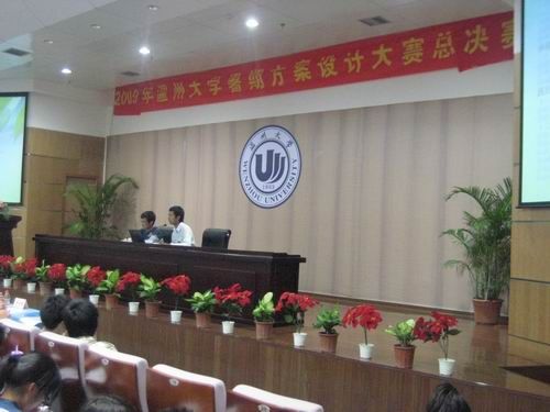 北校信息楼报告厅举办的“2009暑期社会实践策划大赛”总决赛中,财神捕鱼