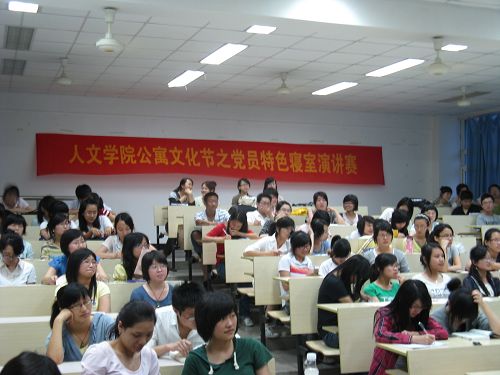 公寓文化节系列活动之党员特色寝室演讲赛在人文楼1-201拉开帷幕。财神捕鱼