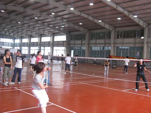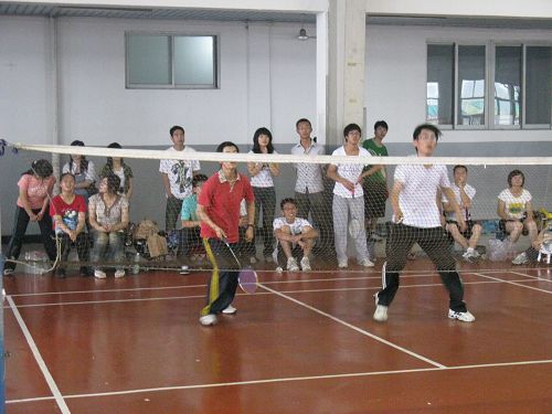 的羽毛球赛正式拉开战幕。运动员们提前半个小时来到了赛场,进行热身运动,同时,双方对员也在这一过程中交流了感情与参赛经验,充分体现了“友谊第一,比赛第二”的参赛精神。赛场上,选手们严肃、认真,奋力拼搏,尽自己的一切努力,为财神捕鱼