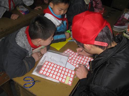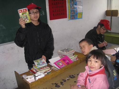 中午12:30分志愿者们在C区门口集合出发,虽然下着雨,但大家兴致很高。来到益民小学后,志愿者们领到了书签,然后分组进入班级整理爱心书籍。志愿者们先将同学们的爱心书籍收集到一处,并给每本书贴上标签,注明编号和姓名。然后再选出一名图书管理员,志愿者将写有借书日期、归还日期等内容的本子交给他们,让他们自己对班级的图书进行管理,方便同学们借阅,防止图书流失。益民小学的孩子们都积极参与到了活动中,将自己的图书拿出来分享。志愿者们也忙得不亦乐乎。
