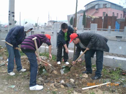 2008年3月11日,财神捕鱼 思源青年志愿者来到丽岙镇,与当地的机关政府领导、企业员工和学生代表一起参与了植树活动。