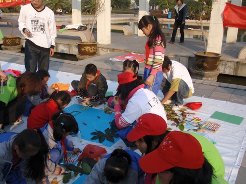 "思源"青协和瓯江建工系青协合作的"绘我所想,画我所爱"贺卡制作大赛在北校区人工湖畔如期举行。